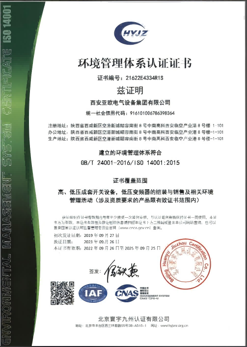 環(huán)境體系證書: