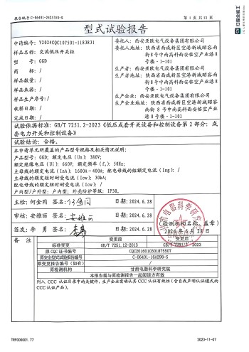 交流低壓開關(guān)柜(GGD)資質(zhì)
